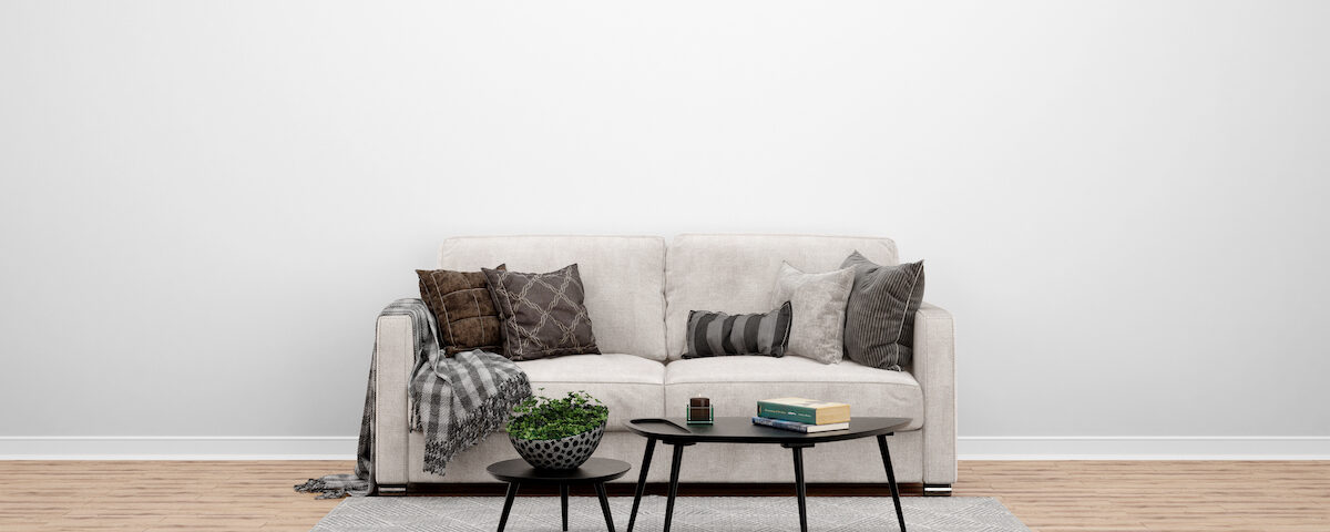 Pero si el sofá está más alejado de la pared, es mejor que el tamaño de la alfombra sea aún mayor para que pueda quedar debajo del resto del mobiliario, como puede ser la mesa de centro, los sillones, etc.